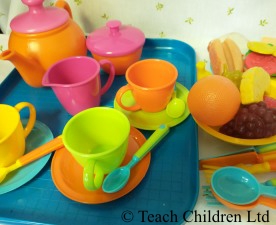 Again, as well as getting them to pretend to make cakes and other delight for you in the café you can introduce the idea of having a menu, adding prices and using money.