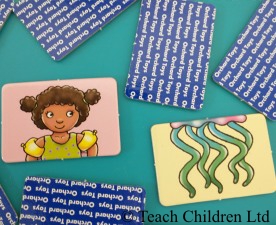 The cards are placed face down and you turn a card over, look at it, then place it back face down again in the same spot and try to find its matching pair by turning another card. If you do not find the matching pair it is someone else’s go. The idea is to remember where the cards are, so you can make a matching pair, the winner is the one with the most pairs of cards.