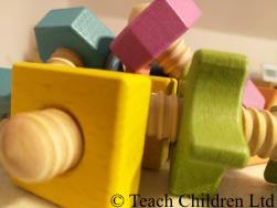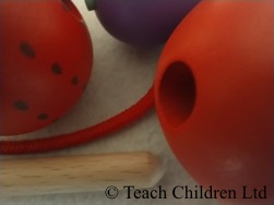 - Lacing cards, sewing and bead stringing (start large then move to small)