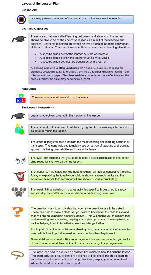 - Detailed, colour coded, lesson plans have been designed to be accessible to all educators and provide: